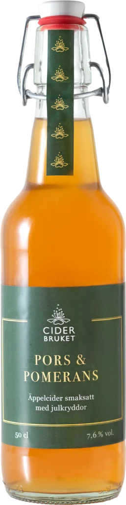 Två sorter som är gjorda på vår äppelcider, pors, pomerans och julkryddor. Cidern kommer från vår egen odling av franska, engelska och svenska cideräpplen. Porsen är också lokal. De är avsedda att drickas kylda eller värmda och skiljer i alkoholhalt. De finns i Systembolagets butiker i Norrtälje, Rimbo och Hallstavik men kan beställas till andra butiker via Systembolagetets hemsida.
